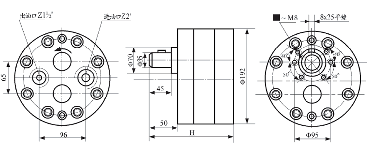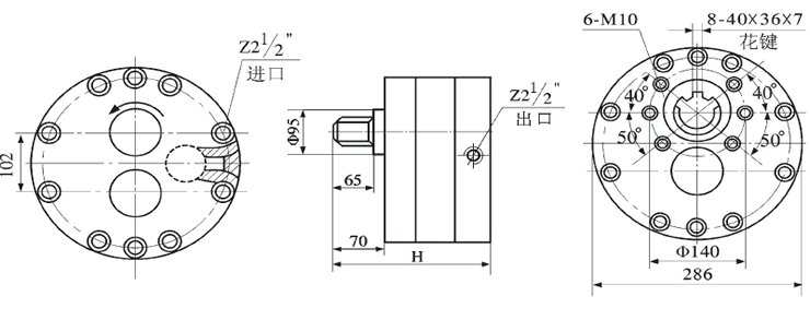 DCB-B160-500低噪音大流量液壓齒輪泵安裝尺寸圖: